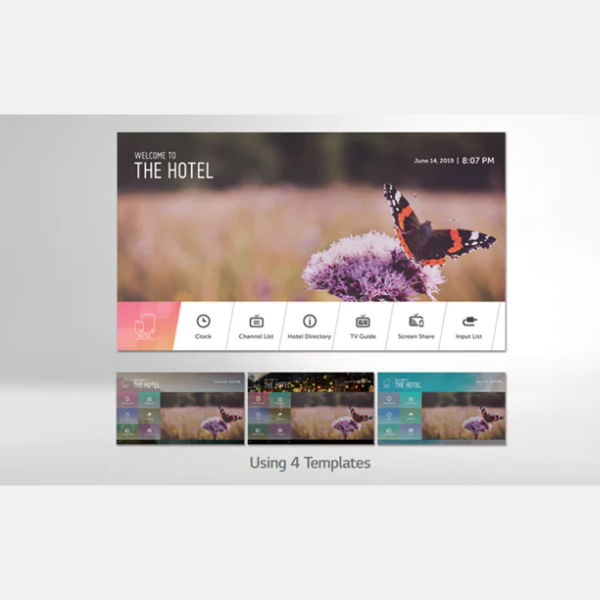 LG has created a new Quick Menu (version 3.0), making it easier and more user friendly than ever. A creation tool enables production of hotel promotional videos.